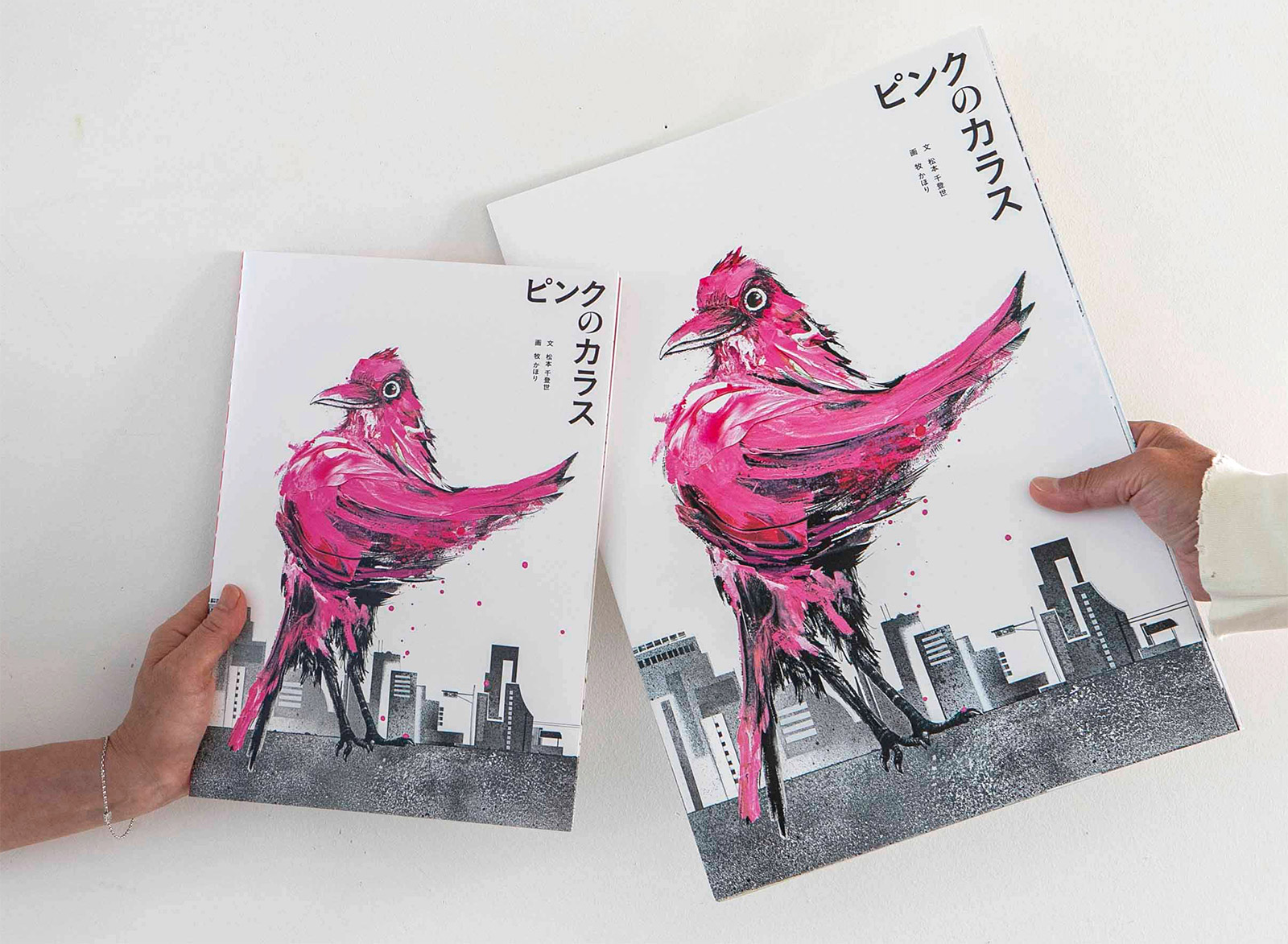 私にとって初めての絵本「ピンクのカラス」刊行記念 "もしキミの羽がピンクだったら?"展が2024年3月28日から4月2日まで、clinic ギャラリー/三軒茶屋・東京で開催されました。