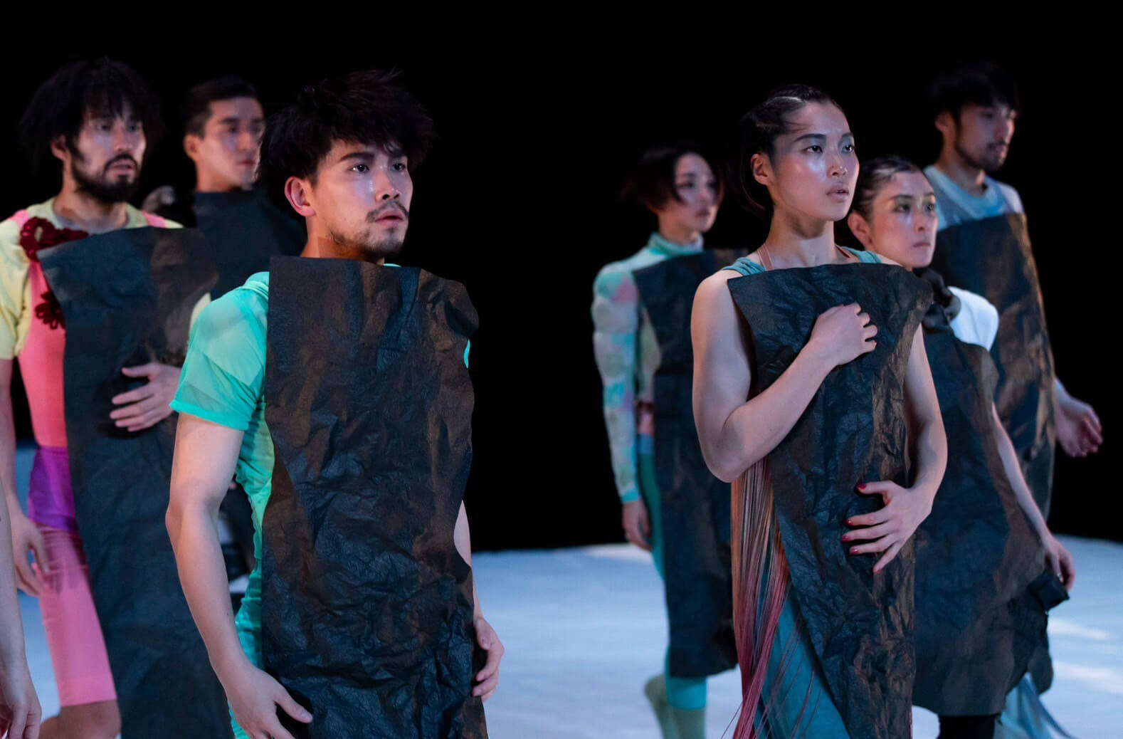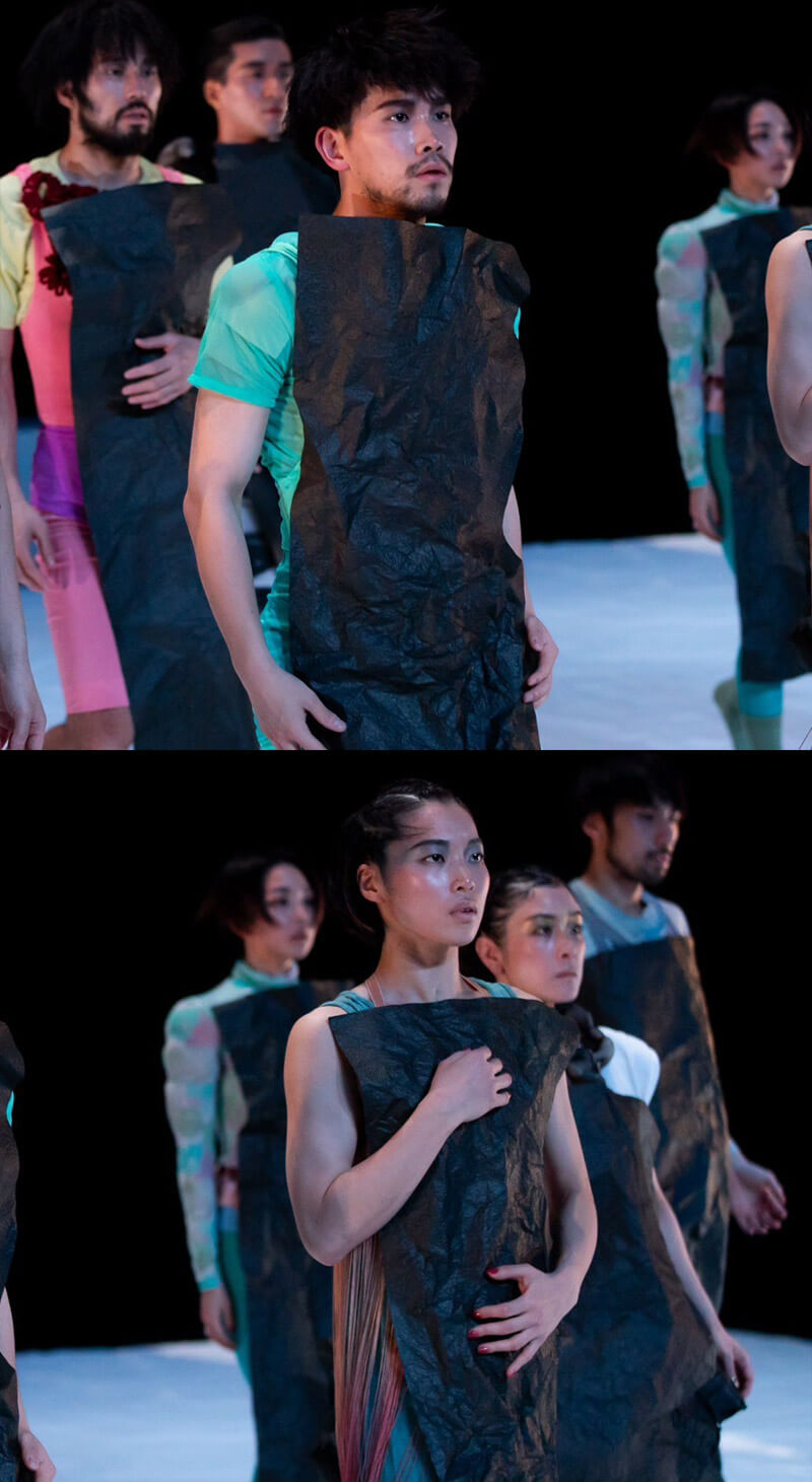 山田うん率いる12名のダンサーが「紙」という滑りやすく、傷つきやすく、繊細で儚い素材の上で新たな表現に挑んでいます。