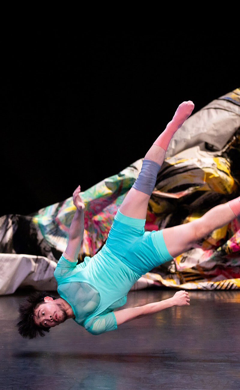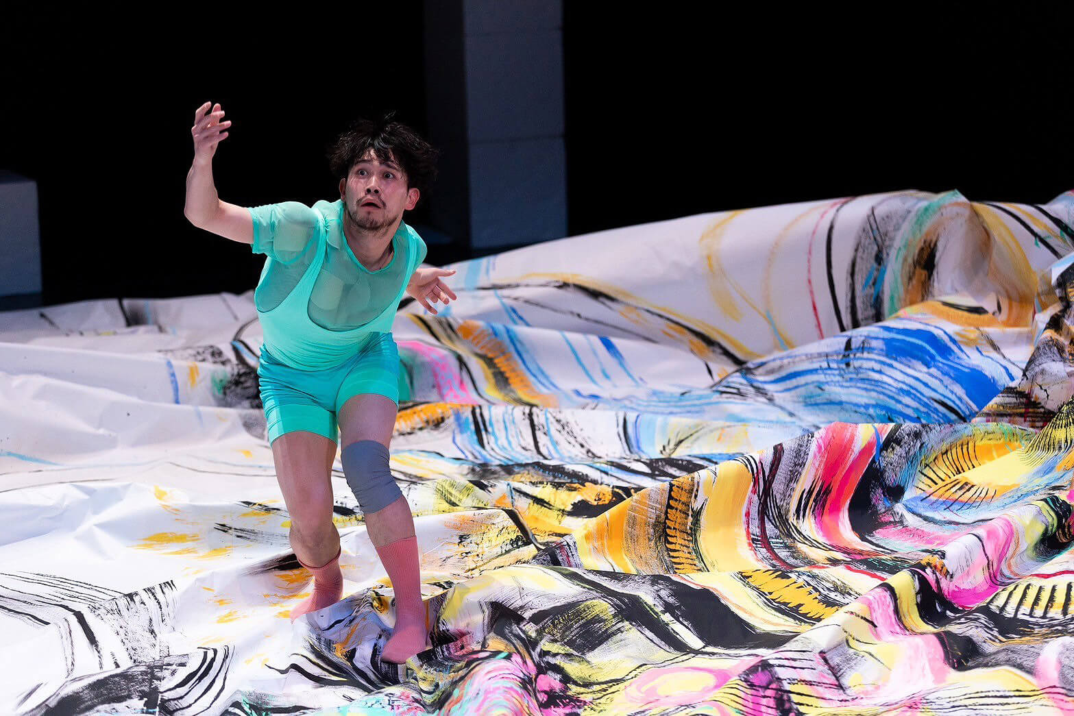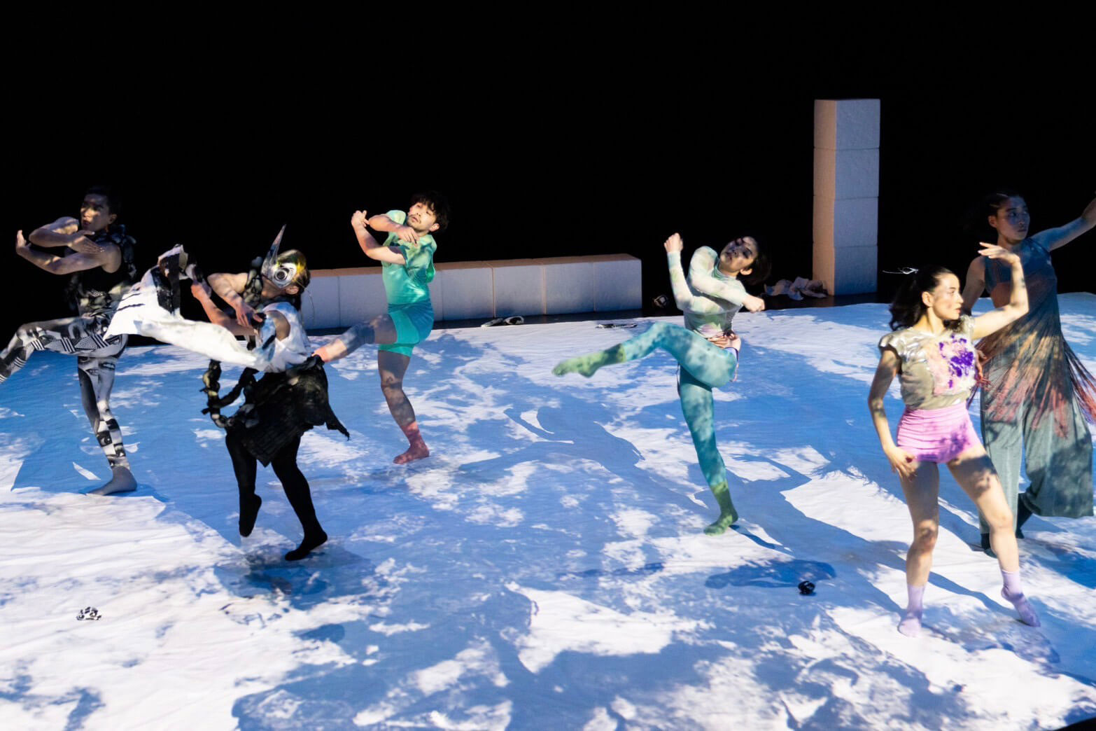 Led by Yamada Un, 12 dancers take on the challenge of performing on the fragile, slippery,